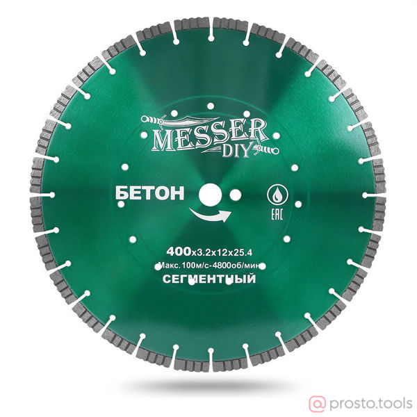 Диск алмазный 400х25,4 сегментный DIY для по бетону, кирпичу 400D-3.2T-12W-25.4H //MESSER