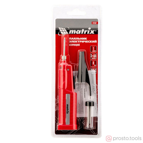 Изображение Электропаяльник беспроводной 4.5 В, 8 Вт, 350°С, припой 10г., работа от эл.питания 3хАА// Matrix Изображение Электропаяльник беспроводной 4.5 В, 8 Вт, 350°С, припой 10г., работа от эл.питания 3хАА// Matrix
