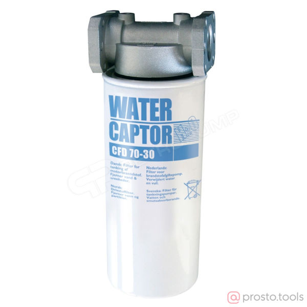 Патронные напорные водопоглощающие фильтры. Фильтр-сепаратор воды. Напорный фильтр патронного типа с поглощением воды. Данный фильтр дает гарантию защиты двигателей, получающих дизельное топливо на АЗС. Характеристикой этого типа фильтров является сепарация и поглощение воды, находящейся в нагнетаемом дизельном топливе. Поглощение воды вызывает уменьшение фильтрующей способности с постепенной потерей нагрузки. Отработанный водой фильтр подлежит замене. Эксплуатационные данные: Фильтрующая способность 30 мкм, Пропускная способность 70 - 150 л/ Мин. Рабочее давление 3.5 бар. Давление разрыва 10 бар.