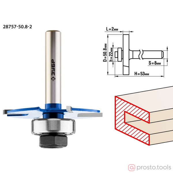 Фреза горизонтально-пазовая, D= 50,8мм, высота-2мм, хв.-8мм, d-22мм, ЗУБР Профессионал