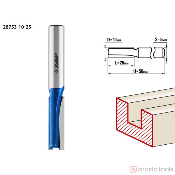 Фреза пазовая прямая, D= 10мм, рабочая длина-25мм, хв.-8 мм, ЗУБР Профессионал