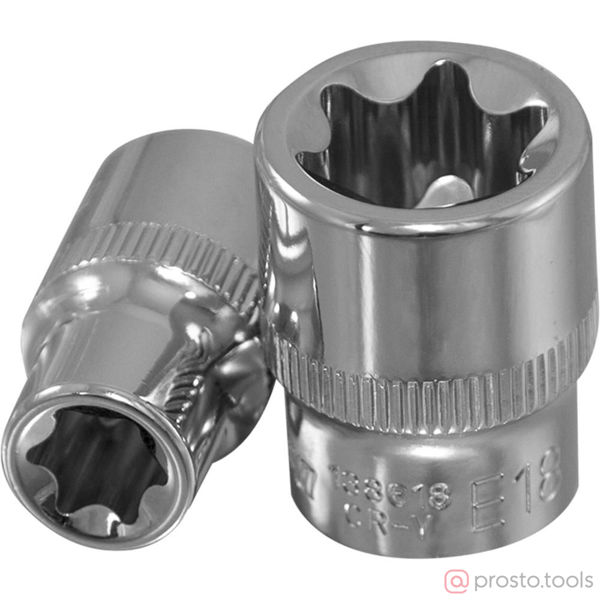 Зеркально отполированное хромоникелевое покрытие придает инструменту OMBRA безупречный вид и облегчает удаление загрязнений после работы. Накатка на переходах позволит надежно удерживать головку в руках, работая с крепежом при свободном вращении без использования дополнительных приводов. Торцевые головки OMBRA изготовлены из легированной хромованадиевой стали по технологии, позволяющей при использовании прилагать нагрузку, превыщающие предельно допустимые для подобного инструмента на 30-50%. Область применения Применяется для монтажных работ с болтами, имеющими рабочий профиль EXTERNAL TORX (Е).