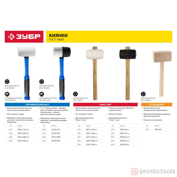 Киянка 340г резиновая с деревянной ручкой "МАСТЕР" (белая резина) //ЗУБР