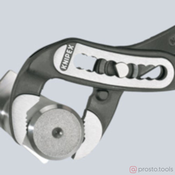 Больше производительности и удобства в работе по сравнению с обычными сантехническими клещами аналогичной длины: 9-ступенчатая регулировка и увеличенная на 30 % захватывающая способность. Хороший доступ к детали благодаря тонкой конструкции в области головки и шарнира. Функция смыкания губок, которая облегчает работу в узких и труднодоступных местах. Захватные губки со специально закаленными зубцами твердостью примерно 61 HRC: прослужат долго с надежным захватом. Коробчатый шарнир: высокая стабильность благодаря двум направляющим. Прочная конструкция, устойчивы к загрязнениям- особенно подходят для работ вне помещения. Специальный механизм предотвращает случайное защемление пальцев. Хромованадиевая сталь, кованая, многократно закалённая в масле.
