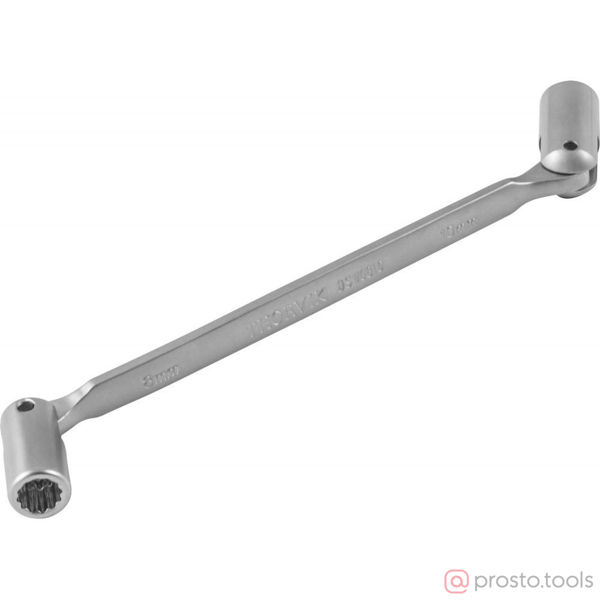 Гаечный ключ, объединяющий в своей конструкции вороток, удлинитель с шарниром и торцевой головкой. Ключи изготовлены из хромованадиевой стали, закалены, имеют хромоникелевое покрытие. Область применения Используется, в основном, при массовом производстве и применении на однотипных или сопредельных по размерам крепежах вместо сборного инструмента. Удобен в ограниченном рабочем пространстве.