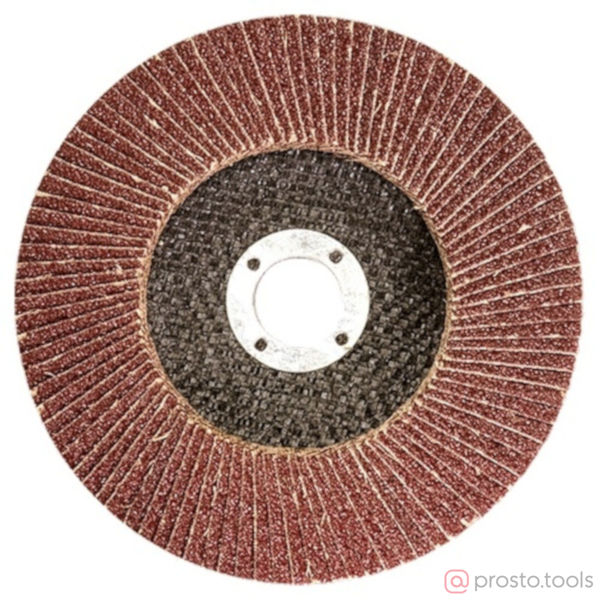 Круг лепестковый торцевой изготовлен из прямоугольных элементов шлифовальной шкурки на тканевой основе, которые расположены в виде веера на подложке из стекловолокна.