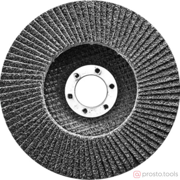 Круг лепестковый торцевой изготовлен из прямоугольных элементов шлифовальной шкурки на тканевой основе, которые расположены в виде веера на подложке из стекловолокна.