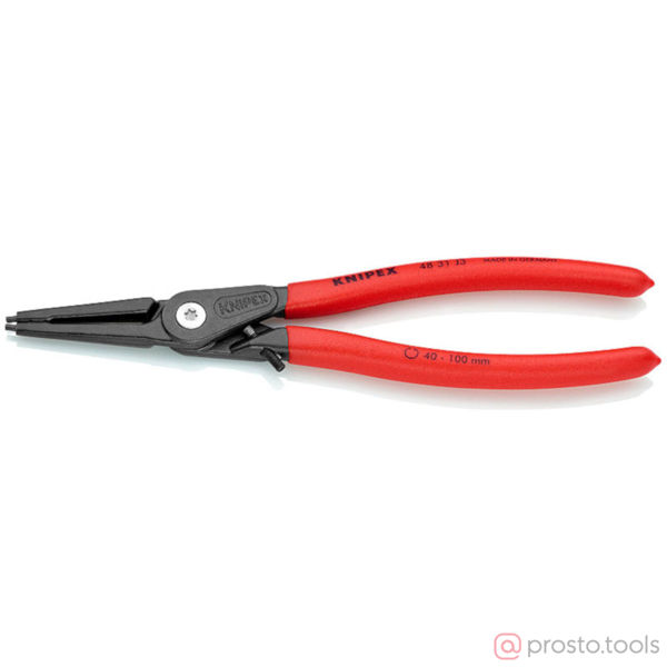 C запрессованными наконечниками для безопасной работы. C высокой нагрузочной способностью в условиях длительного применения: срок службы дольше до 10 раз по сравнению с обточенными наконечниками. Винтовой шарнир: точный ход без зазоров. Ручки с покрытием из нескользящего пластика. Корпус клещей: хромованадиевая электросталь, кованая, закалённая в масле. Запрессованные наконечники: проволока из пружинной стали, тянутой. С ограничением закрытия (регулируется с помощью упора). Регулировка с помощью винта с внутренним шестигранником. Идеальное решение для серийного производства, поскольку эффективно предотвращается растяжение колец.