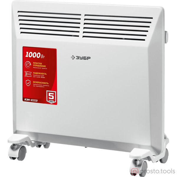 Равномерная конвекция воздуха Высокоресурсный монолитный нагревательный элемент. Механический терморегулятор Защита от опрокидывания Кронштейн для крепления на стене в комплекте Бесшумная работа Описание Электрический конвектор ЗУБР мощностью 1000 Вт - подойдет для обогрева любых домашних и офисных помещений площадью до 15 м2.