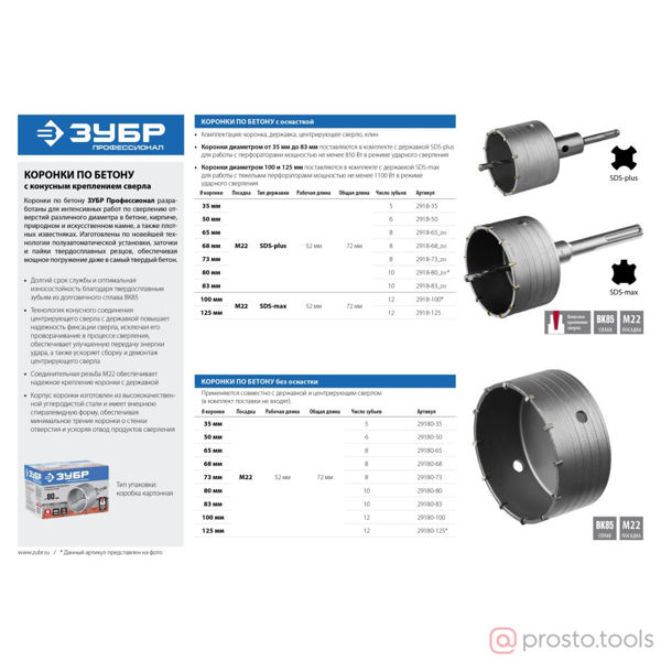 При прокладке коммуникаций в строящемся здании не обойтись без коронок по бетону. Они позволяют без труда получать отверстия среднего или большого диаметра в самых прочных материалах. Коронки имеют твердосплавные зубья из сплава ВК85, усовершенствованную систему крепления сверла на конус и резьбовое соединение с державкой М22.