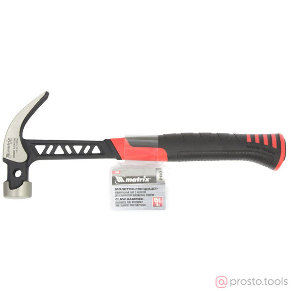 Молоток-гвоздодёр 0,45 кг цельнокованый,боек с магнитом, двухкомп. обрезин. рук., PRO //MATRIX