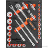 Зеркально отполированное хромоникелевое покрытие придает инструменту OMBRA безупречный вид и облегчает удаление загрязнений после работы. Накатка на переходах позволит надежно удерживать головку в руках, работая с крепежом при свободном вращении без использования дополнительных приводов. Торцевые головки OMBRA изготовлены из легированной хромованадиевой стали по технологии, позволяющей при использовании прилагать нагрузку, превышающие предельно допустимые для подобного инструмента на 30-50%. Область применения Инструменты, представленные в наборе, относятся к системе сборного инструмента с присоединительным квадратом 1/2", которая является основной при проведениислесарно-монтажных работ по обслуживанию автомобильной техники.