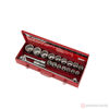 Инструменты изготовлены из хромованадиевой стали, имеют полированное хромовое покрытие и упакованы в металлический кейс.