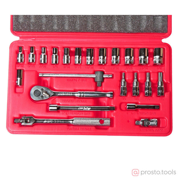 Набор головок торцевых 6-гранных и насадок 1/4" 5/32"-1/2", T20-T40 (в кейсе) 23 предмета JTC /1