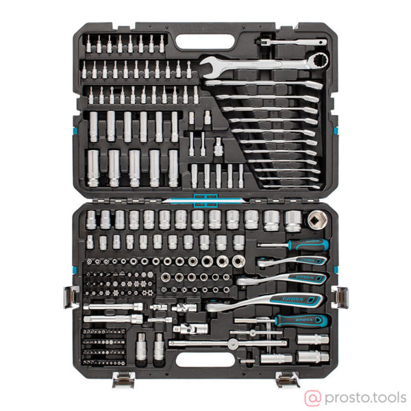 Набор инструмента 216 пр. пласт. кейс 1/2", 3/8", 1/4" (GROSS)
