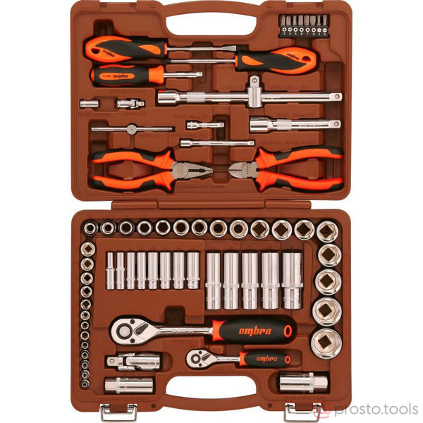 Набор инструмента 69 пр. пласт. кейс 1/4, 1/2" OMT69S //OMBRA
