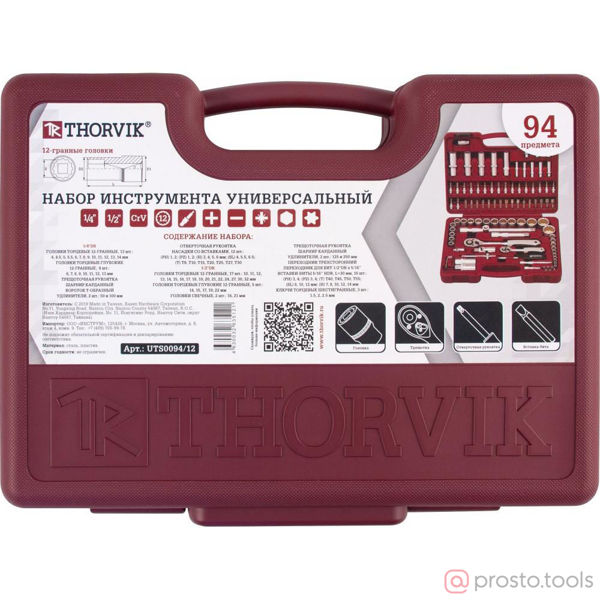 Набор инструмента 94 пр. пласт. кейс 1/4", 1/2" 12-гр. UTS0094/12 //THORVIK