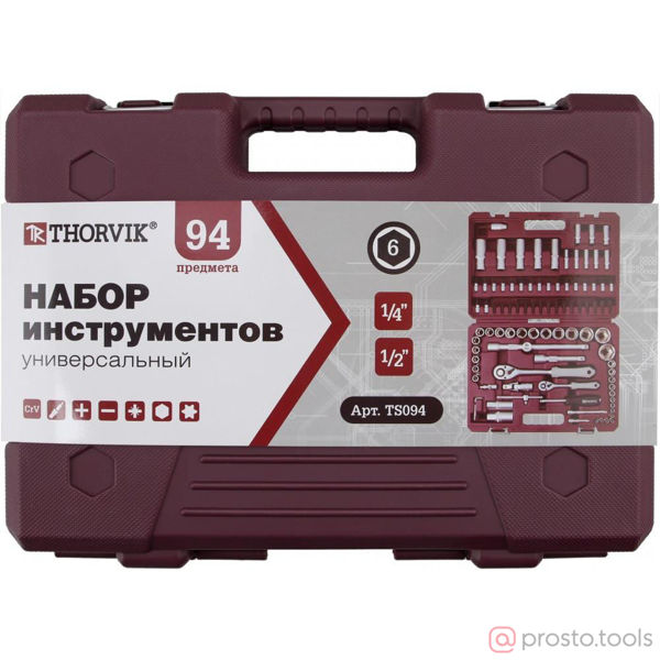 Набор инструмента 94 пр. пласт. кейс 1/4", 1/2" TS094 //THORVIK