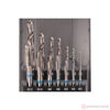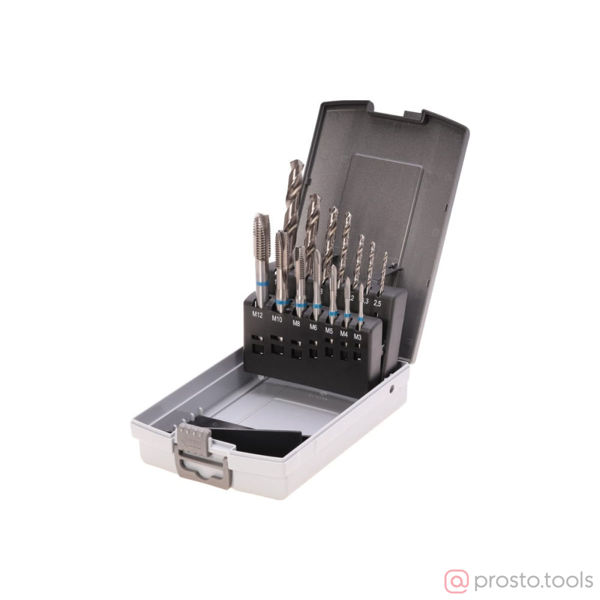 Набор машинных метчиков RUKO M3-M12+сверла HSS-G 245048RO предназначен для создания внутренней резьбы в различных материалах. Изготовлен из высококачественной быстрорежущей стали HSS-G, которая гарантирует прочность и износостойкость. Подходит для обработки заготовок, выполненных из легированной стали, чугуна, алюминия, меди, бронзы, цинка, с пределом прочности до 800MPa. Резьба нарезается за один этап, машинным или ручным способом. Форма захода для сквозного отверстия, B/4-5P. Набор включает машинные метчики, для метрической резьбы с основным шагом, изготовленные в соответствии с DIN371/376, ISO2(6h) Сверла под резьбу, изготовленные в соответствии с DIN338, h8. Инструмент упакован в прочный пластиковый чемодан. Быстрорежущая сталь HSS-G Полностью шлифованный профиль Допуск на метчиках ISO2 (6h) Допуск на сверлах h8 Для сквозного отверстия Стружколом Комплектация Метчики DIN 371: M3x0,5мм; M4x0,7мм; M5x0,8мм; M6x1,0мм; M8x1,25мм; M10x1,5мм; Метчики DIN 376: M12x1,75мм; Сверла DIN338: 2,5мм; 3,3мм; 4,2мм; 5,0мм; 6,8мм; 8,5мм; 10,2мм; Пластиковый кейс