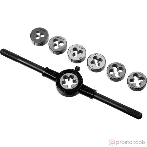 Набор плашек М3-М12 (плашкодержатель 1шт, плашки 7шт) 8 пр. STAYER "MASTER