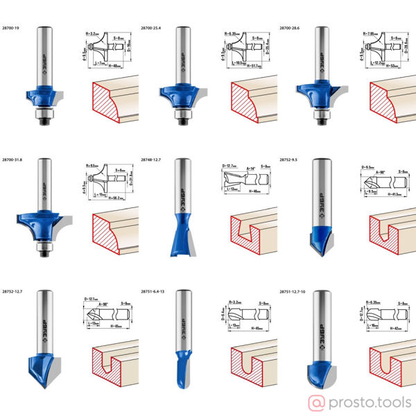 Набор фрез отлично подходит для профилирования кромок, изготовления декоративных пазов и рисунков, фрезерования канавок при работе с различными видами древесины.