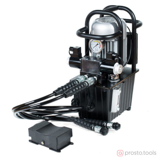 Создание давления рабочей жидкости при работе с исполняющим гидравлическим инструментом Тип инструмента: электрогидравлический Объем маслобака, л: 0.5 Клапанов: 2 Длина РВД, м: 1.8 Наличие клапана АСД: 1 Используемое напряжение, В: 380 Особенности конструкции: двухступенчатое нагнетание давления|ножной пульт управления|индикатор уровня масла|встроенный термометр|встроенный манометр|максимальное давление 700 бар (70 Мпа)