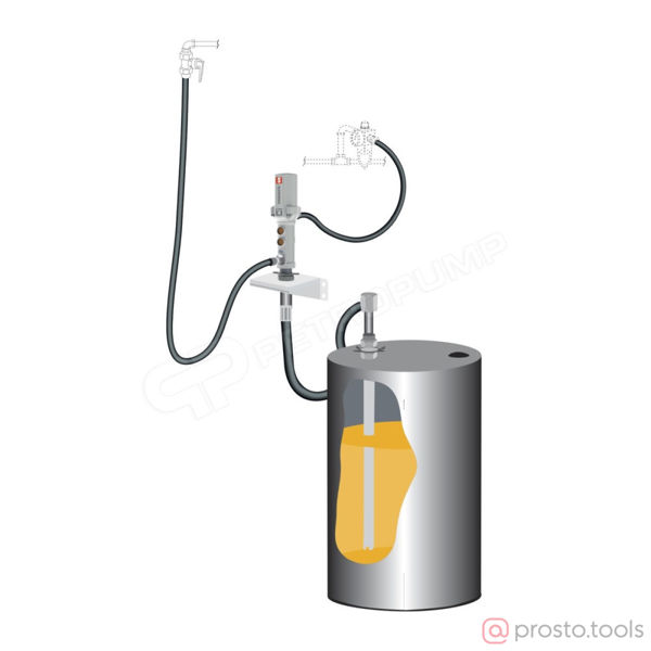 Комплект для откачки масла из бочки 205 л с коэффициентом сжатия 5:1 с монтажом на стену. Настенный насос и комплект для перекачки позволяет быстро и без утечек заменить бочку. Включает: 347 120 - насос с коэффициентом сжатия 5:1; 362 911 - комплект для подключения насоса PumpMaster 4 с коэффициентом сжатия 3:1 и 5:1; 367 105 - комплект для перекачки из бочек 205 л для настенных насосов.
