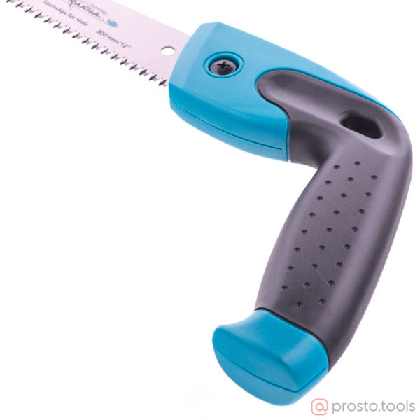 Двухкомпонентная рукоятка ножовки изготовлена из ударопрочного пластика, а эргономичная форма делает ее комфортной для рук даже при интенсивном пилении.