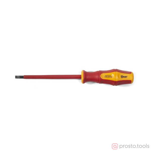 проведение электромонтажных работ под напряжением до 1000 В Тип инструмента: отвертка Серия: ПРОФИ Диэлектрические свойства: 1 Вид отвертки: диэлектрическая Профиль шлица: шлиц SL Материал стержня (биты): хром-ванадиевая сталь Длина стержня: 100 Особенности конструкции: для работ под напряжением до 1000В|намагниченные наконечники|двухкомпонентная нескользящая рукоятка|отверстие для подвешивания|рукоятка с защитой от скатывания|маркировка профиля на торце рукоятки