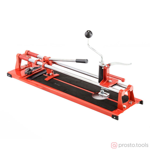Предназначен для резки керамической кафельной плитки толщиной до 16 мм и длиной от 400 до 600 мм (в зависимости от модели). Режущим элементом является ролик из твердого сплава ВК-8. Направляющие изготовлены из высококачественной инструментальной стали с антикоррозионным покрытием. Дополнительное приспособление балеринка позволяет вырезать отверстия в плитке диаметром до 80 мм. Поворотный угольник-угломер позволяет резать плитку под углом до 45 градусов, а также регулирует размер и дополнительно фиксирует отрезаемую заготовку.