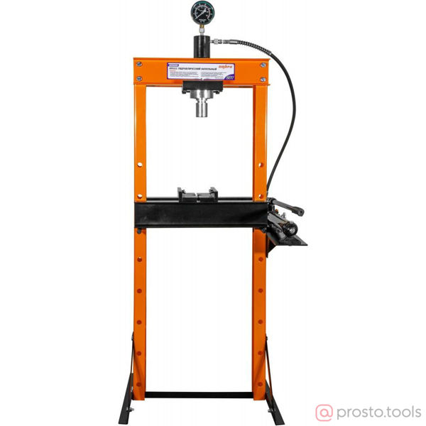 Прессы гидравлические OMBRA предназначены для производства работ по монтажу и демонтажу деталей машин и механизмов, использующих в своей конструкции установку элементов, требующих применения подобных изделий для их ремонта и обслуживания. Также прессы можно использовать для правки и гибки различных деталей. Исполнительное устройство пресса, используемое в изделии, может быть демонтировано и применяться для других видов работ (подъем, перемещение) отдельно от рамы. Расстояние между опорами 490 мм. Область применения Производство работ с применением гидравлических прессов должно осуществляться персоналом, имеющим соответствующую квалификацию, знакомым с правилами техники безопасности, условиями эксплуатации и обладающим навыками, необходимыми для выполнения подобных работ. Применяется для демонтажа и установки деталей узлов и агрегатов машин. Технические характеристики Артикул Ход поршня, мм Развиваемое усилие, мм Рабочее пространтсво max, мм Масса изделия, кг ОНТ620N 185 20 955 90,0