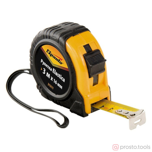 Пластиковый корпус обрезинен для защиты инструмента при падениях. Плавающий зацеп измерительного полотна обеспечивает точные измерения поверхностей. Специальное окошко в зацепе измерительного полотна позволяет использовать рулетку в качестве циркуля. Возвратная пружина усиленного типа.