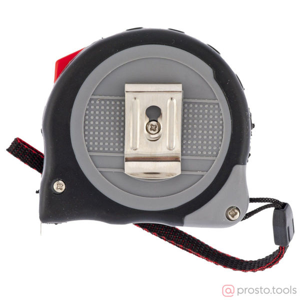 Рулетка оснащена ремешком из нейлона для фиксации рулетки на запястье и скобой для фиксации на ремне.