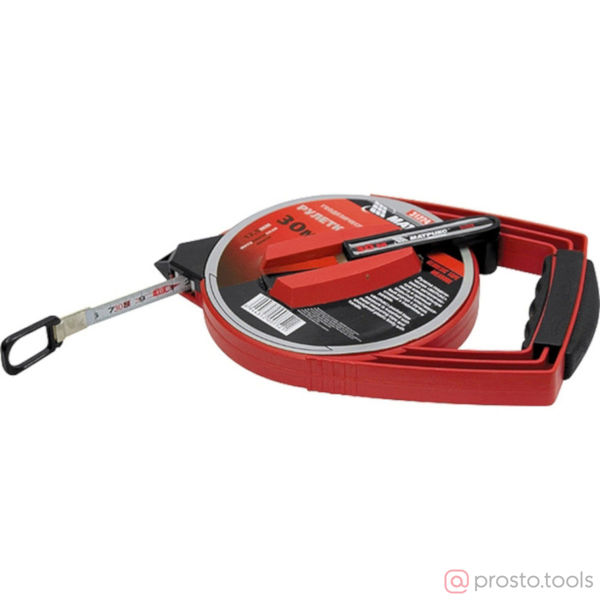 Корпус рулетки из ударопрочного пластика. Двухкомпонентная ручка обеспечивает удобный захват. Имеет заостренный наконечник для фиксации рулетки в почве при проведении длинномерных измерений. Измерительная лента защищена полимерным покрытием, стойким к абразивному воздействию. Цена деления – 1 мм. Класс точности – 2. Предназначена для измерения размеров и расстояний.