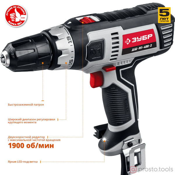 Шуруповерт сетевой 400Вт ДШ-М1-400-2 0-450/0-1800 об/мин //ЗУБР