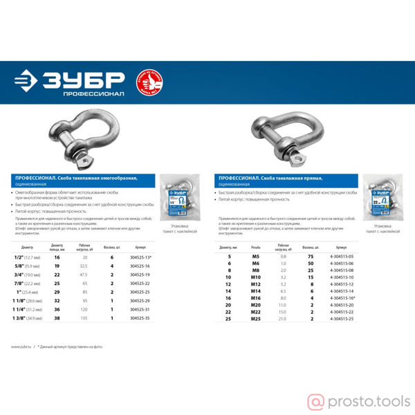Скоба такелажная, 16мм, 4 шт, тип прямой, оцинкованная, ЗУБР