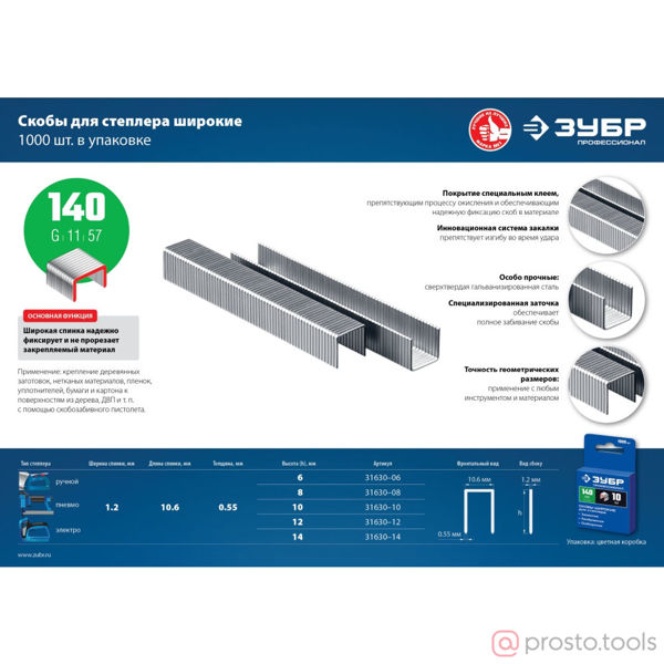 Скобы тип 140, 6 мм, особотвердые, ЗУБР "ПРОФЕССИОНАЛ" 31630-06, 1000 шт
