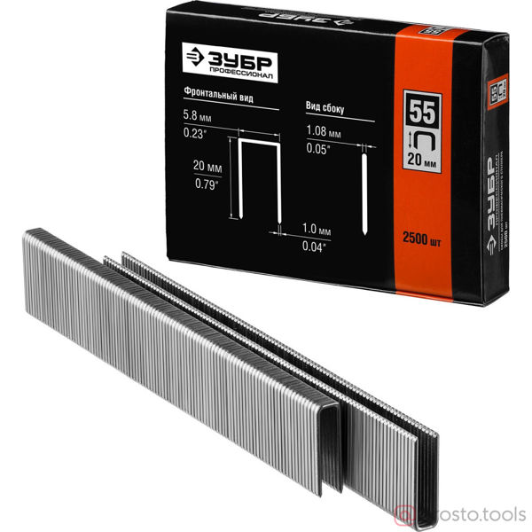Скобы тип 55, 20 мм, особотвердые, ЗУБР "ПРОФЕССИОНАЛ" 31855-20, 2500 шт