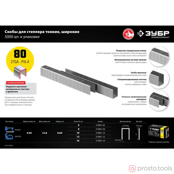Скобы тип 80, 6 мм, особотвердые, ЗУБР "ПРОФЕССИОНАЛ" 31880-06, 5000 шт