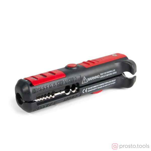 снятие изоляции с проводов сечением от 0,5 до 6,0 мм Тип инструмента: ручной стриппер Тип кабеля: круглые провода Сечение провода: 0.5|0.75|1.0|1.5|2.5|4|6 Дополнительные функции: детектор напряжения Особенности конструкции: позиционные лезвия|звуковая и световая индикация|выдвижное лезвие|раскрывающаяся рукоятка Длина инструмента, мм: 125