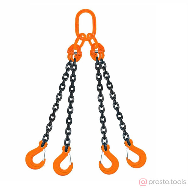 4СЦ - строп из цепи и комплектующих 8 класса прочности. Преимущества: стойкость к высоким температурам и другим агрессивным средам, замена изношенных деталей.