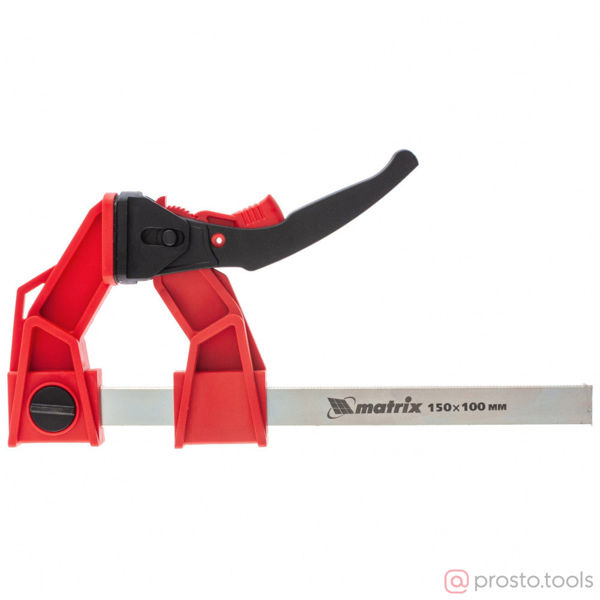 Струбцина реечная быстрозаж., усил., пл. корпус,рыч. храп. мех.,150х100х306мм,штанга 5х22мм// Matrix