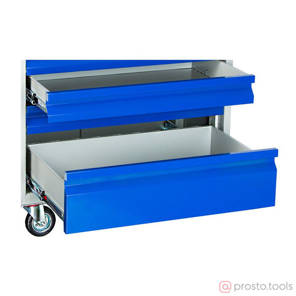 Предназначены для хранения и оперативного перемещения инструмента на производственных предприятиях, в автосервисах и ремонтных мастерских. Тележки выпускаются как открытого, так и закрытого типа изготовлены из высокопрочной стали телескопические направляющие выдвижных ящиков система полного выдвижения ящиков 1 большой выдвижной ящик + 5 малых нагрузка на малый ящик 15 кг, на большой ящик 30 кг, и крышку тележки 40 кг максимальная нагрузка на тележку 145кг комплектуются удобной ручкой и резиновыми колесами (диаметр 100 мм), 2 - неповоротных, 1- поворотное, 1 - поворотное с тормозом верх тележек покрыт резиновым маслостойким ковриком тележка комплектуется центральным ключевым замком возможность установить дополнительные аксессуары поставляются в собранном виде Размеры тележки WDS-6 ВхШхГ: 870х750х453 - размер с установленными колесами 738х820х453 - размер с установленной ручкой