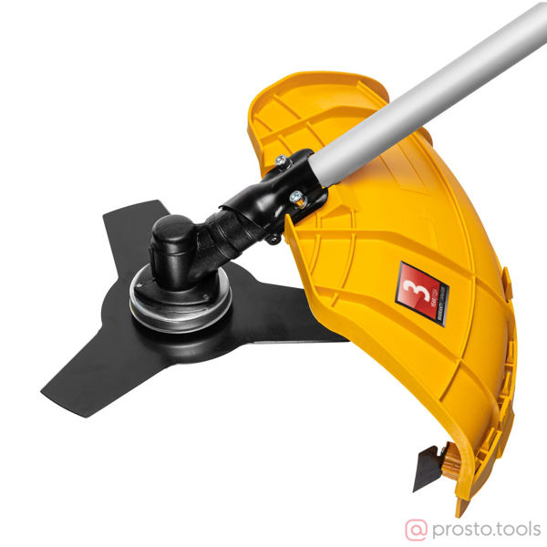 Бензиновый триммер Denzel DTS-43 962135 с двигателем объемом 43 куб. см и неразъемной штангой поставляется комплектом из 2 частей. Усиленная катушка с леской предназначена для скашивания мягкой травы, а трехлопастный нож — для скашивания травы различных типов, в том числе с жесткими стеблями (полыни, крапивы, лебеды). Ширина скашивания леской составляет 42 см, ножом — 25,5 см.;Двухтактный бензиновый двигатель мощностью 2,5 л.с. обеспечивает эффективное решение поставленных задач и полную автономность. Работать можно даже в самых отдаленных участках сада, не заботясь о наличии сети электропитания.