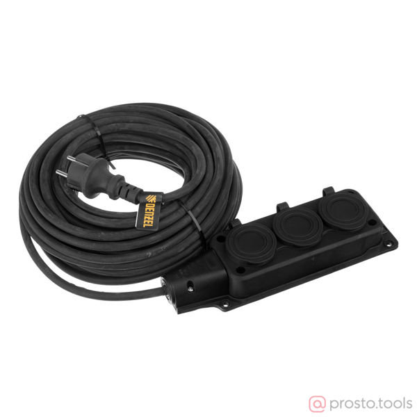 Силовой удлинитель-шнур Denzel Top Series 37422 с 3 розетками, с кабелем КГТТ сечением 3 x 1,5 мм и длиной 20 м, предназначен для подключения электроприборов на удалении от розетки. Суммарная мощность потребителей составляет 3680 Вт для полностью размотанного кабеля и 1840 Вт — для смотанного. Удлинитель подходит для подключения электроинструмента, будет полезен на строительной площадке и в быту.