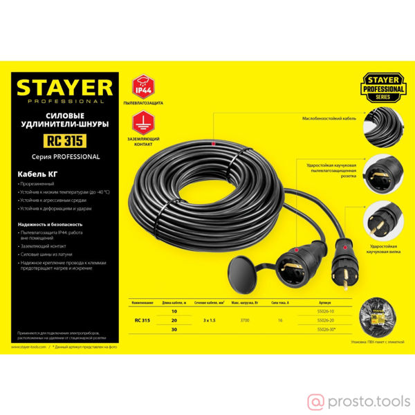 Удлинитель эл. 30м 1 гнездо "RC 315", 3700 Вт, IP44, КГ 3х1,5 мм2 //STAYER