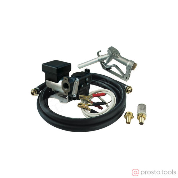 Портативный переносной перекачивающий блок для дизельного топлива, производительностью 35/70 л/мин. Оснащен самозаправляющимся шиберным насосом с электродвигателем на 12/24 В постоянного тока. Имеет чугунный корпус. Напор всасывания топлива до 2-х м. Имеется колодка зажимов с переключателем и плавкими предохранителями для защиты от перегрузки, а также 2-х метровый кабель с зажимами для подключения к аккумуляторной батарее. Топливораздаточный рукав - 5 м, диаметр 3/4”. Алюминиевый топливораздаточный кран. Донный всасывающий фильтр.