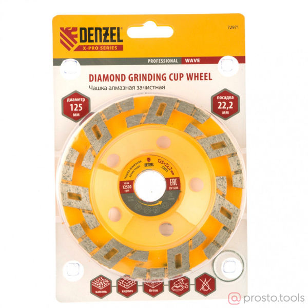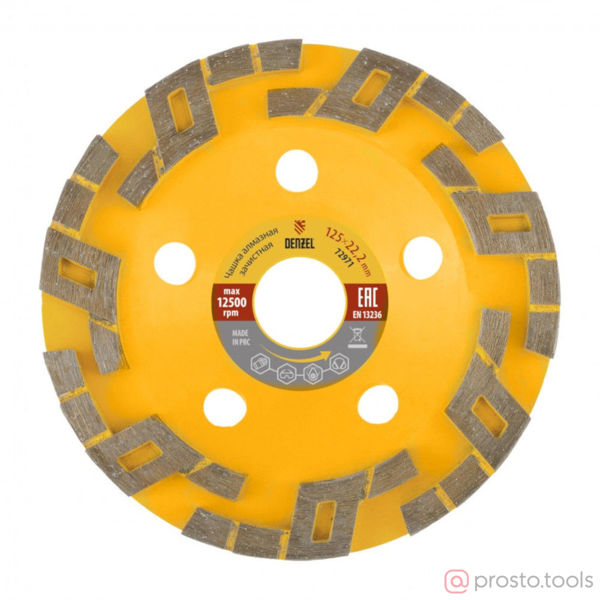 Чашка алмазная "Волна" ТМ DENZEL имеет усовершенствованную форму алмазных сегментов, способствует более интенсивному выбросу шлама и охлаждению чашки во время работы.