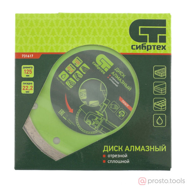 Диск алмазный 125х22,2 сплошной, мокрая резка //СИБРТЕХ