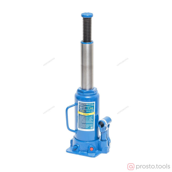 Бутылочный домкрат 12т NORDBERG N3112 служит для удержания легкового и грузового автотранспорта с целью технического обслуживания. Модель имеет простое управление и не требует специального обслуживания. Длина ручки - 80 мм. Домкрат подходит для установки в качестве вертикального рабочего элемента в конструкции пресса, трубогиба и другого оборудования.